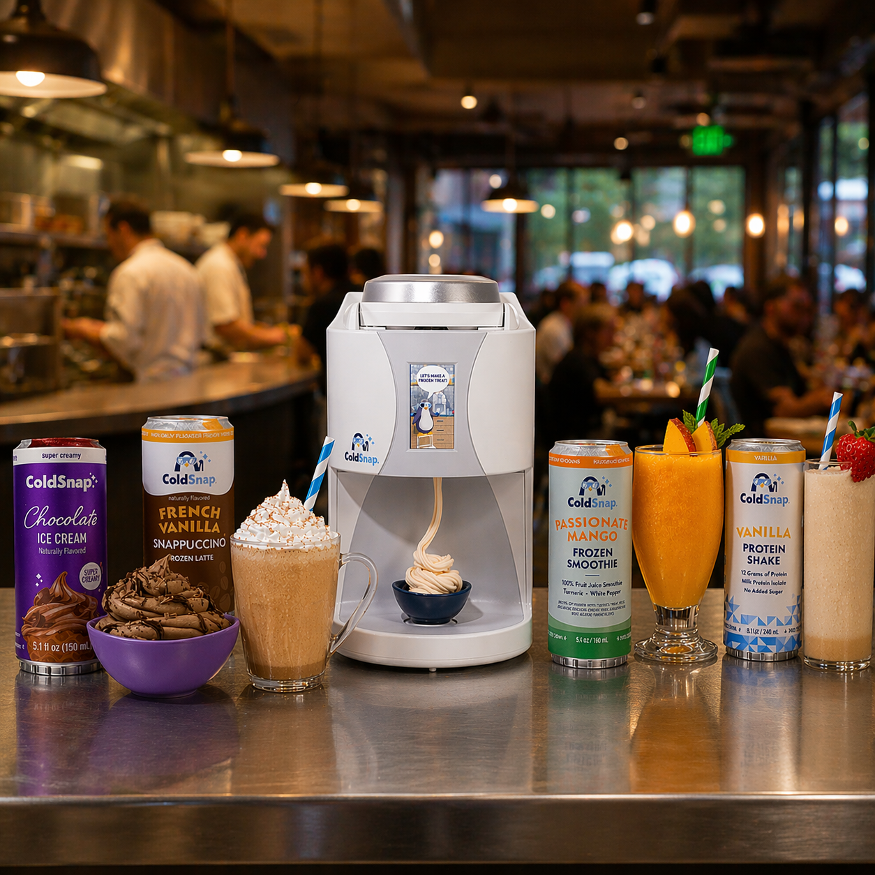 Add a dessert option that doesn't add staff, equipment complexity, or end-of-night cleanup. ColdSnap delivers premium ice cream, frozen lattes, smoothies, and more in about 2 minutes. It's soft serve, made to order, no kitchen involvement required. A single countertop machine expands your menu, drives incremental revenue, and asks nothing of your team.